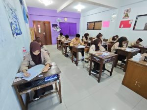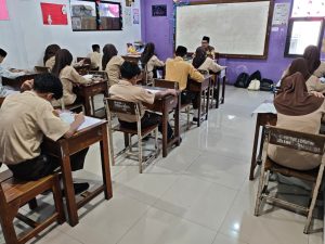 Di beberapa ruang kelas, terlihat para siswa fokus membaca soal dan menuliskan jawaban mereka. Tidak sedikit yang sesekali berpikir sejenak sebelum melanjutkan menulis. Hal ini menunjukkan bahwa mereka berusaha maksimal dalam mengerjakan setiap soal yang diberikan.